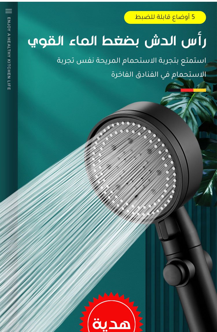 مجموعة رأس دش للحمام متعدد الوظائف مع 5 أوضاع قابلة للضبط من الماركة الألمانية مكونة من 3 قطع